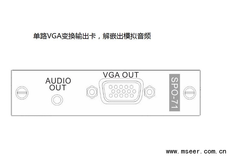 SRO-71 VGA單通道變換輸出卡,配合SMD主機使用,采用獨立板卡設計,每塊卡支持1路VGA輸出,解嵌出模擬音頻,支持最高1920x1200P60的高清圖像傳輸.