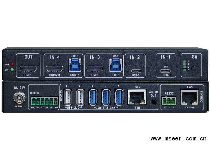 l 多種輸入輸出:2路 HDMI(含USB數(shù)據(jù))輸入,2路USB-C輸入(其中1路支持60W PD供電),1路HDMI2.0輸出